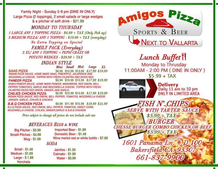 Overall, Amigo's Pizza has gained a loyal following for its excellent service, consistent quality, and flavorful offerings. Whether you're a first-time visitor like Michael H. or a regular like Philip N., you're sure to be impressed by the delicious pizzas and welcoming atmosphere at Amigo's Pizza. Don't miss out on this culinary treasure in Bakersfield!